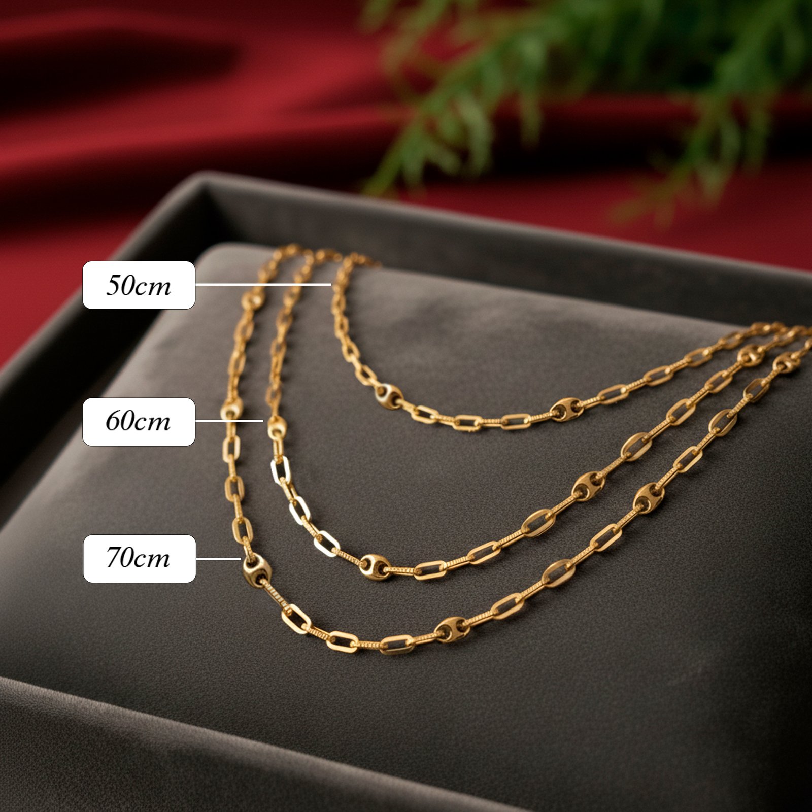 Disponible en 50 cm, 60 cm y 70 cm de longitud.